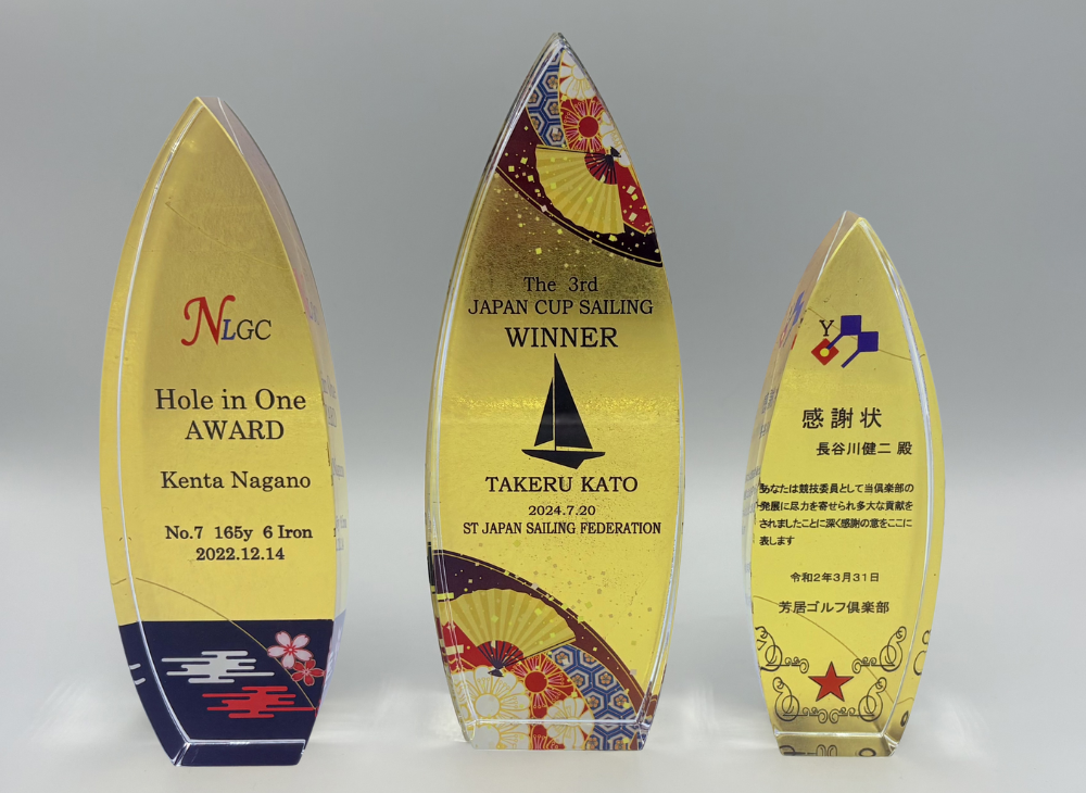 金箔トロフィー TK-344柔らかなカーブを描く縦長フォルムが上品で存在感あるデザイン。京都産の金箔を全面に施し、光の反射で華やかに輝きます。