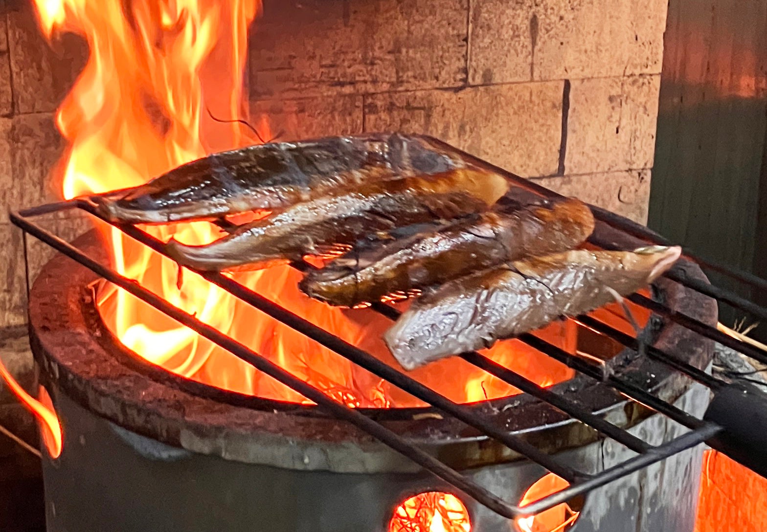 店内にある藁焼き場で、職人が一節一節丁寧に手焼きで焼き上げます。わらの香ばしさ・素材の旨みをご堪能ください。