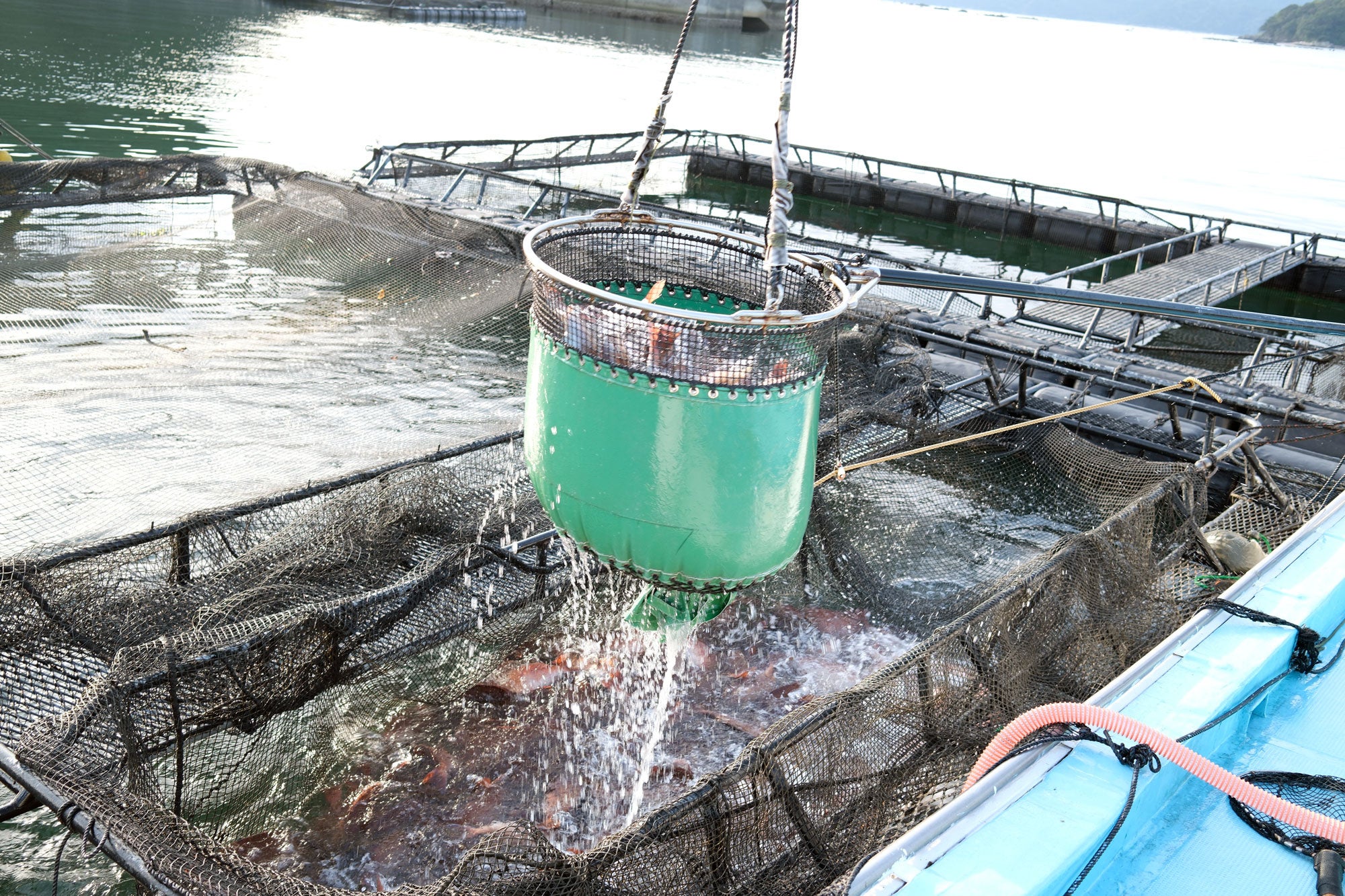 徹底した飼育管理で脂の乗りがよく、特注飼料で血合いの変色が少ないのが特徴