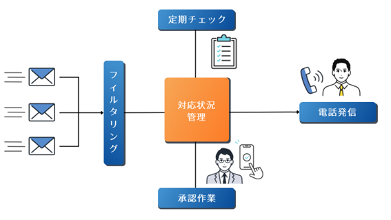 メールのフィルタリングから対応状況の把握、担当者への電話通知までを自動化。