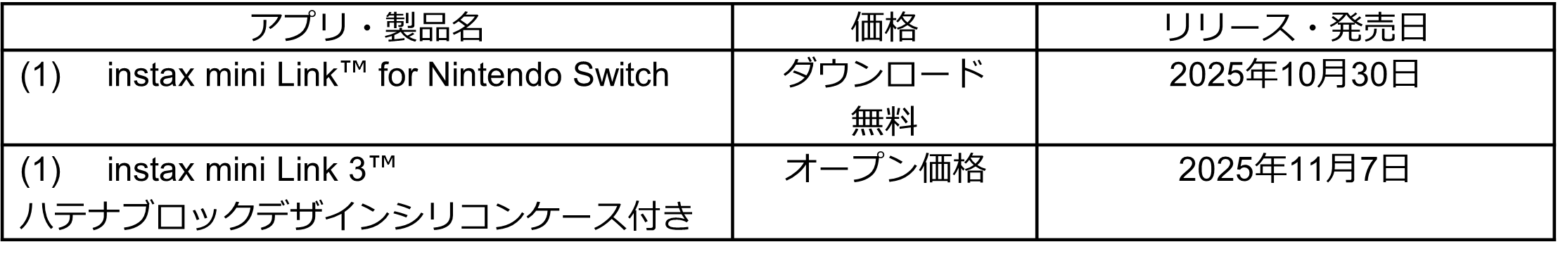 当社は、2021年4月に「instax mini Link(TM) for Nintendo Switch」をリリースして以降、2025年6月には「Nintendo Switch 2」に対応したアップデート版を提供開始。グローバルで幅広いユーザーにご利用いただいています。今回、さらに魅力的な撮影・プリント体験を提供する新機能を搭載したバージョンアップ版をリリースします。