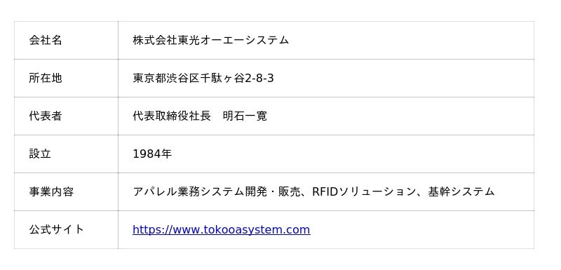 東光オーエーシステムは、RFIDを軸とした業務DXを通じて、アパレル業界全体の生産性向上とサステナブルなサプライチェーン構築を支援してまいります。