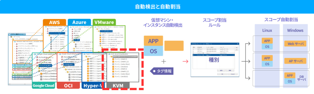この追加によって、AWS、Azure、Google CloudやOCI、VMwareやHyper-VとKVMが混在するハイブリッド/マルチクラウド環境の一元管理を実現します。