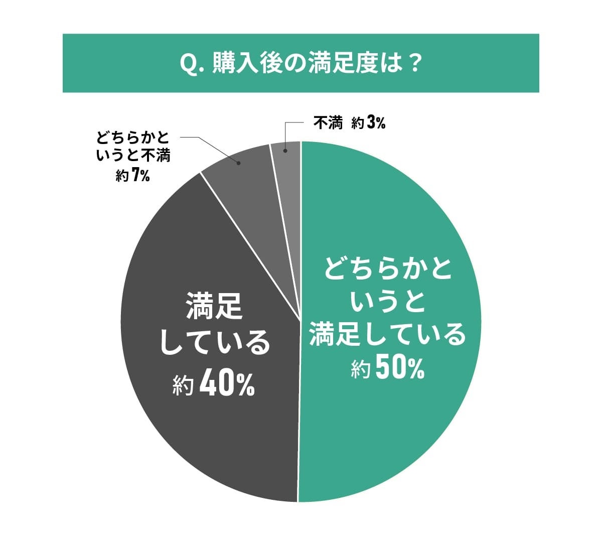 また「購入前に気になる部分は全て聞き、納得した上で購入した」「担当者と相談をした」といった、専門家とのコミュニケーションも重要な要素です。疑問点を残さずに購入判断をすることが、後の満足度につながることが示されています。
