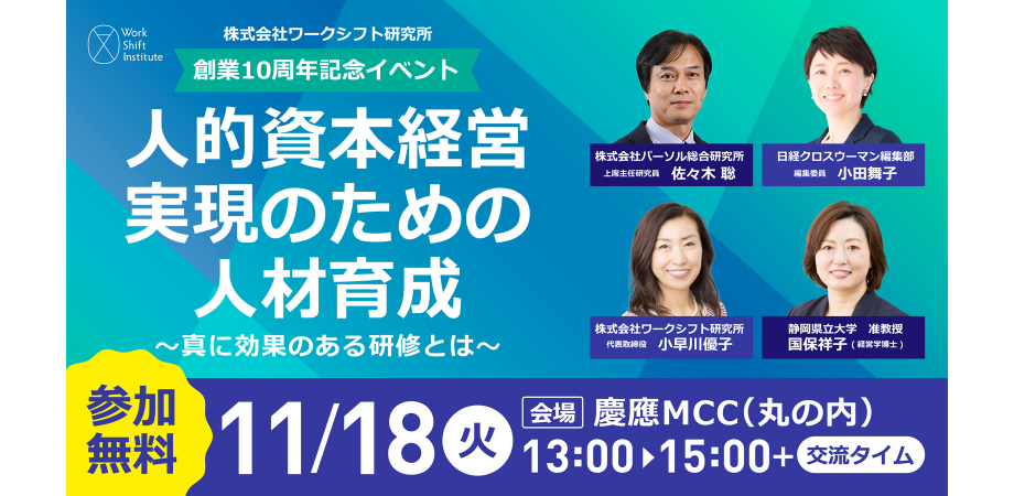 ワークシフト研究所の設立10周年記念イベント「人的資本経営を実現する人材育成の最前線 ~真に効果ある研修とは~」