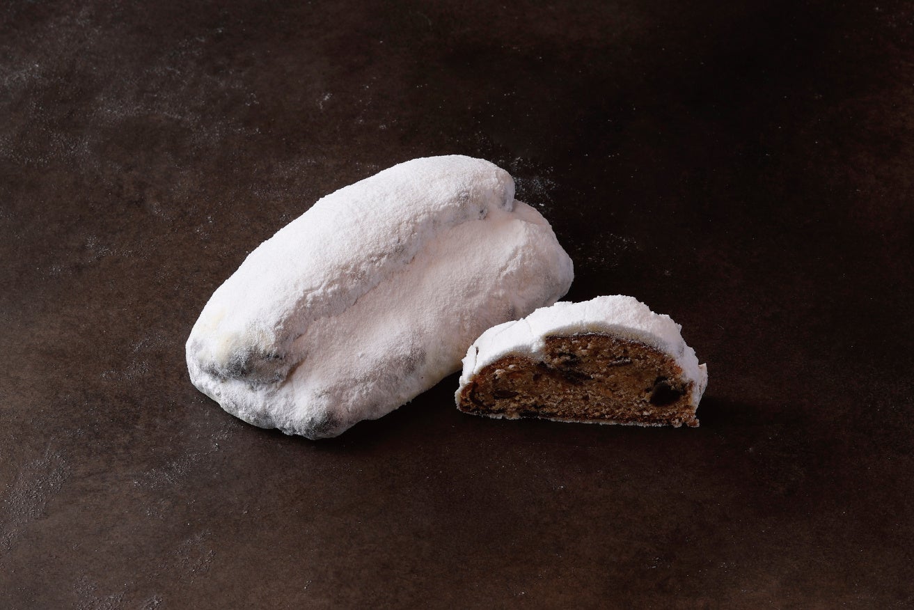 アプリコット、レーズン、クランベリー、白イチジク、オレンジ、レモン、アーモンドがたっぷりと練り込まれ、噛むほどにフルーティな香り・甘み・酸味が口いっぱいに広がります。生地にはたっぷりのバター液を染み込ませ、粉糖で丁寧にコーティングをしています。数日から数週間にかけて味がなじんでいき、香りと風味が日をますごとにより深まっていく、クリスマスを心待ちにしながら味の変化も楽しんでお召し上がりいただけるシュトーレンです。