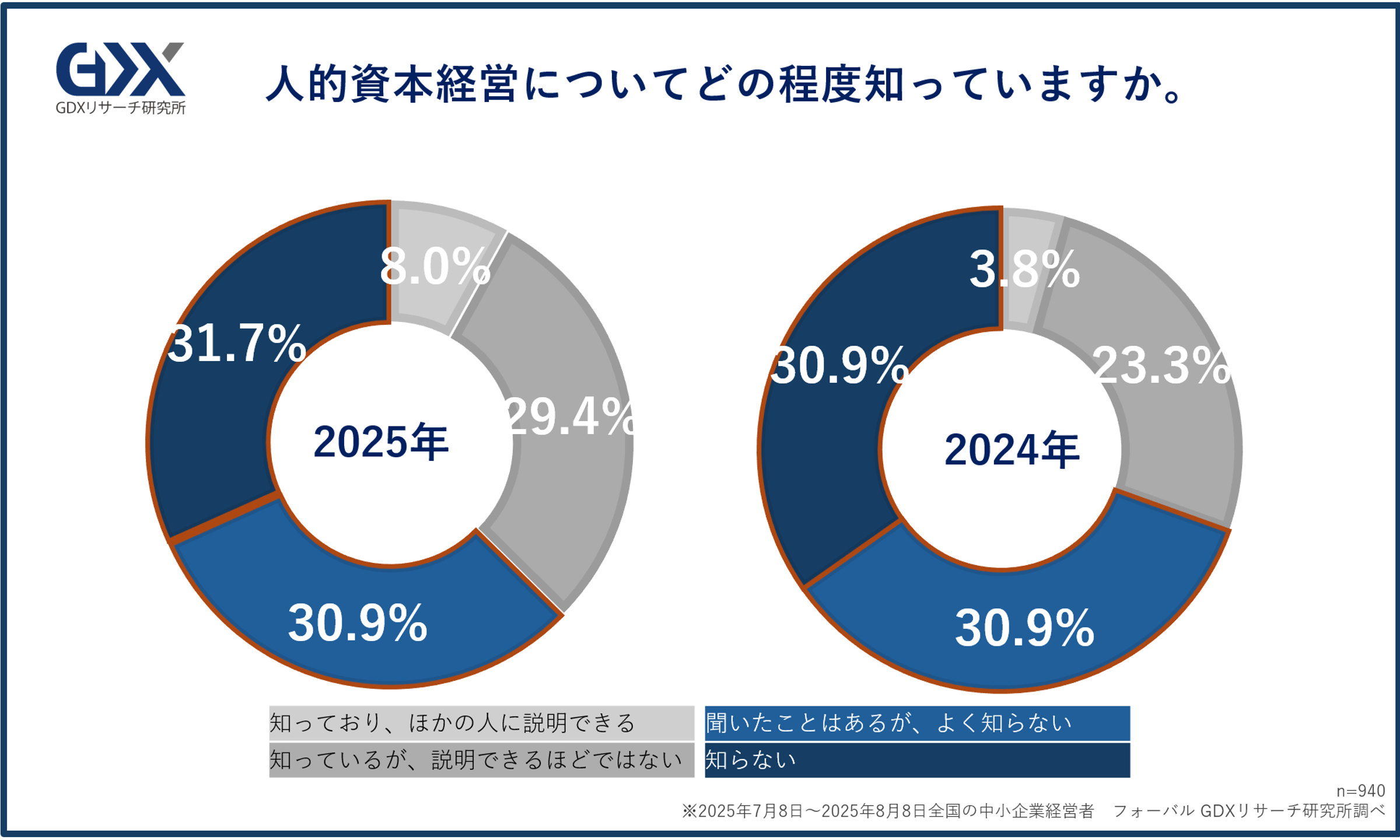 人的資本経営の認知度:「知っており、他の人に説明できる」は3.8%
