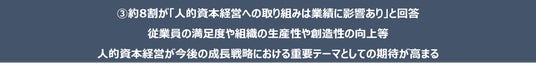 3.それでも約8割が「人的資本経営への取り組みは業績に影響あり」と回答。
