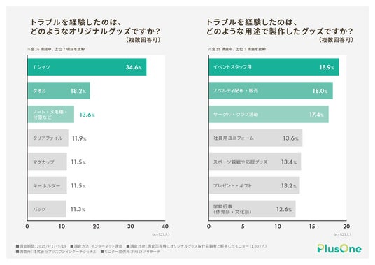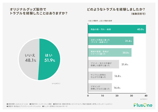 オリジナルウェア・グッズの製造販売を行う株式会社プラスワンインターナショナル(本社:香川県高松市、代表取締役:新開強、以下プラスワン)は、オリジナルグッズ製作経験者を対象に、「オリジナルグッズのトラブル」に関する調査を実施しました。