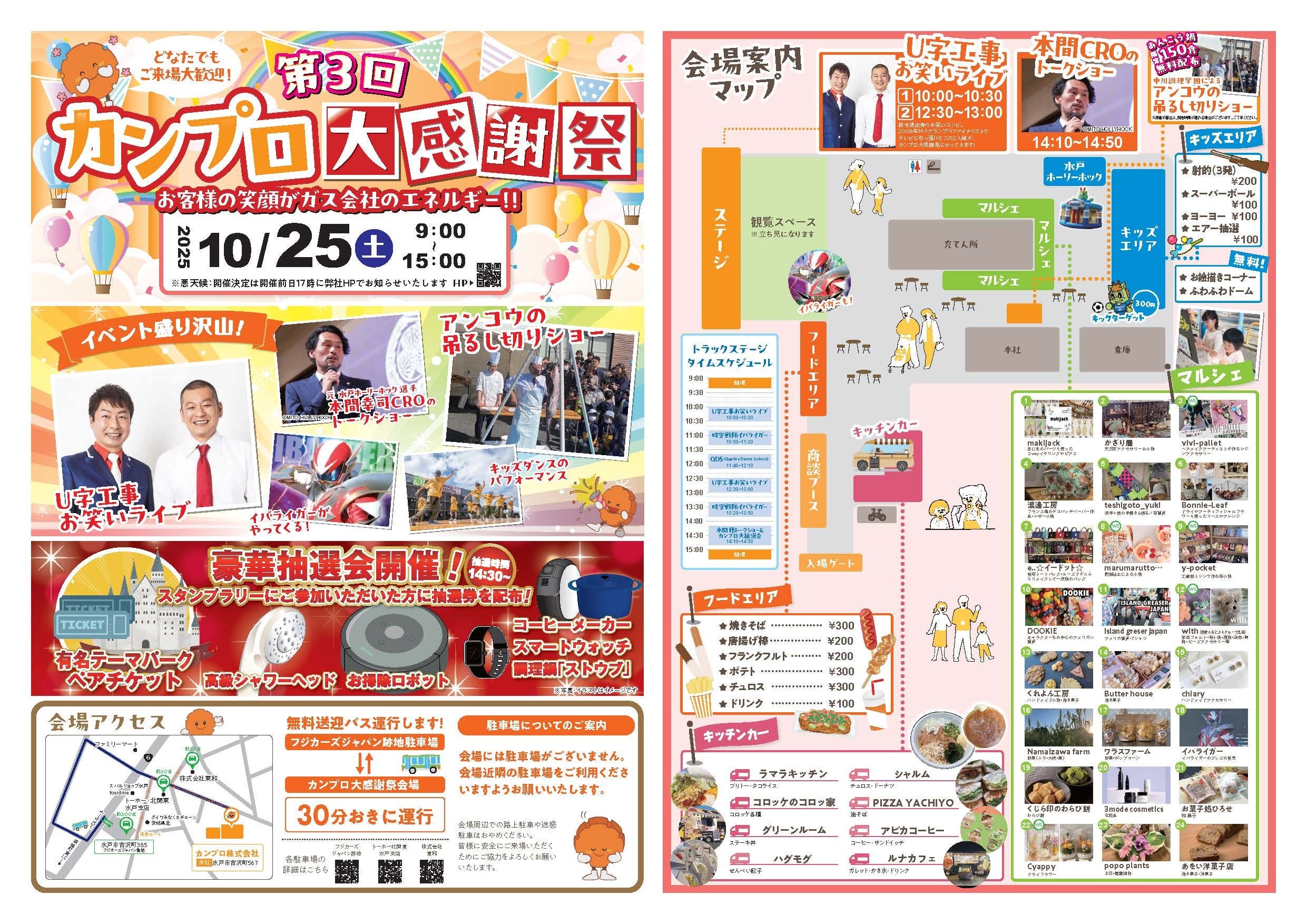 茨城県内に7箇所の拠点をもつ地域密着のガス供給企業である、カンプロ株式会社(茨城県水戸市、代表取締役 秋葉良孝)は、2025年10月25日(土)9:00~15:00に「第3回カンプロ大感謝祭」を開催します。