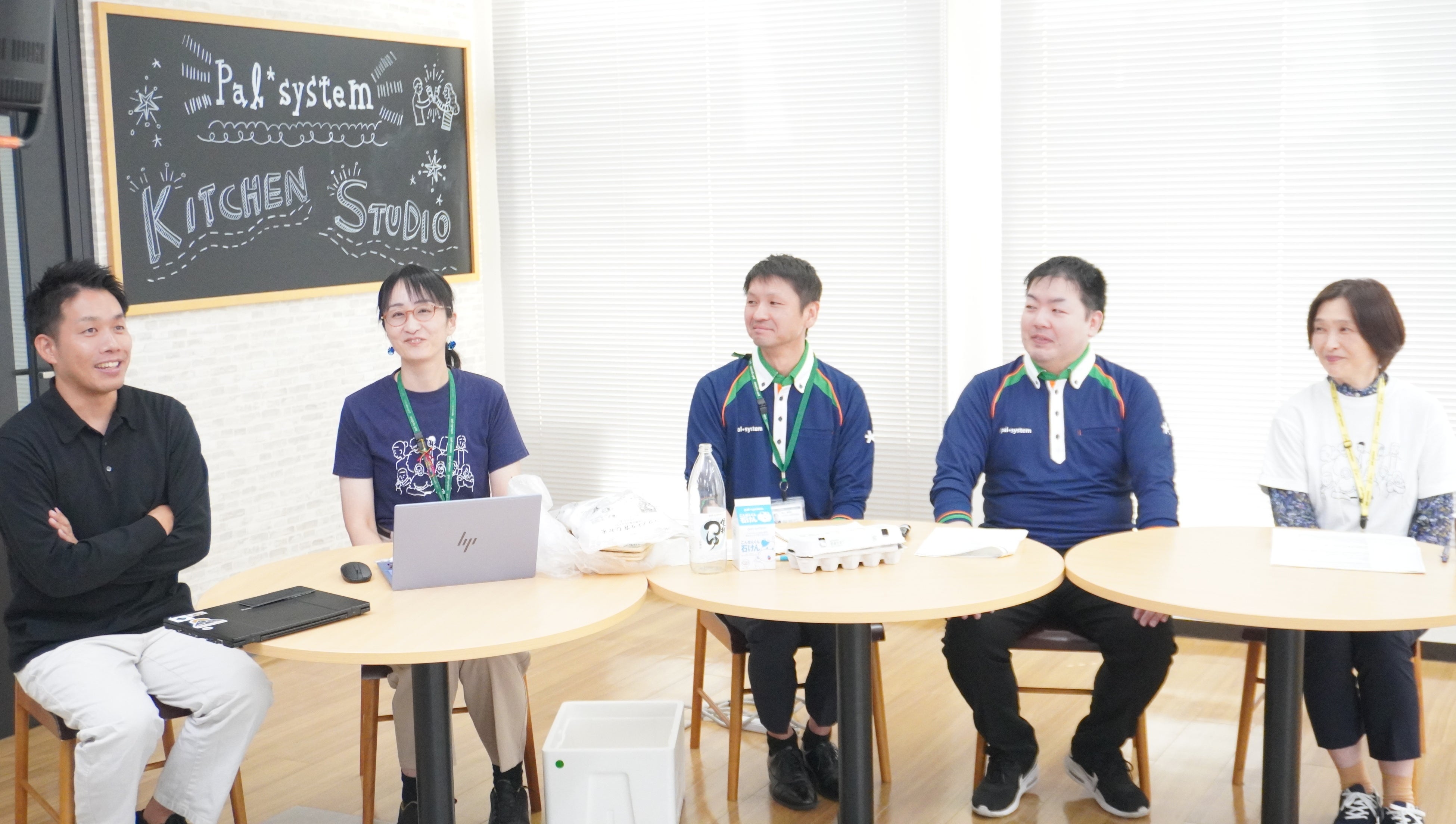 イベント後半は、配送担当としてリユース・リサイクル品の回収や分別に従事した経験のある、パルシステム神奈川(本部:横浜市港北区、理事長:藤田順子)の高木職員、パルシステムのリサイクル事業を担う株式会社パルシステム電力(本部:新宿区大久保、代表取締役社長:大安さとる)の望月職員、パルシステム連合会から環境分野の政策立案などを行う環境政策推進室の志賀職員が登壇し、寺井さんとともにパルシステムのリユース・リサイクル活動について話し合いました。