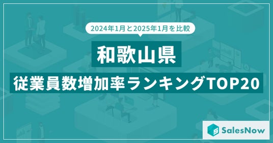 「誰もが活躍できる仕組みをつくる。」をミッションに掲げ、セールスチームの武器となるデータベース「SalesNow」を展開する株式会社SalesNow(本社:東京都渋谷区、代表取締役:村岡功規、以下「SalesNow」)は、国内550万社の企業情報を完全網羅した日本最大級のデータベース「SalesNow DB」より、和歌山県に本社を置く企業の2024年1月時点および2025年1月時点の従業員数データを分析し、従業員数増加率ランキングTOP20を発表しました。本ランキングは、各企業の成長スピードを可視化するものであり、新規雇用の創出や事業拡大の動向を明らかにしています。