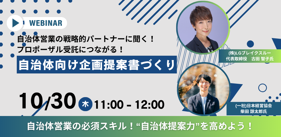 自治体との接点づくりに悩む営業担当者必見 ― 成功する提案書の作り方と最新動向を1時間で学べます