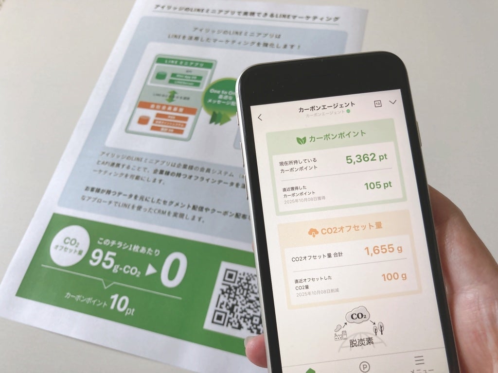 株式会社アイリッジ(本社:東京都港区、代表取締役社長:小田 健太郎、東京証券取引所グロース:3917、以下「アイリッジ」)は、印刷事業等を手掛けるマルト株式会社(本社:石川県小松市、代表取締役社長:今村 幸彦、以下「マルト」)が2025年10月14日から提供を開始したLINEミニアプリ「カーボンエージェント」を開発支援したことをお知らせします。なお、「カーボンエージェント」は2025年10月22日~24日に幕張メッセで開催される「Japan DX Week 秋 2025・第16回社内業務 DX EXPO秋」のアイリッジブースにて、対応チラシとセットでお試しいただけます。ぜひお立ち寄りの上、お試しください。