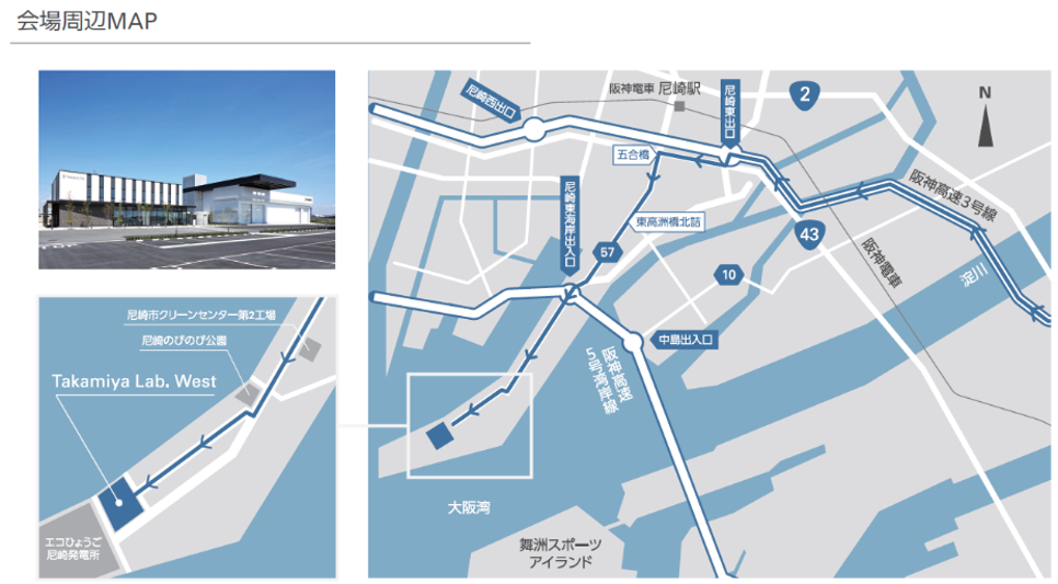 -JR尼崎駅・阪神尼崎駅からTakamiya Lab. Westへの直通送迎バスを運行しています。
