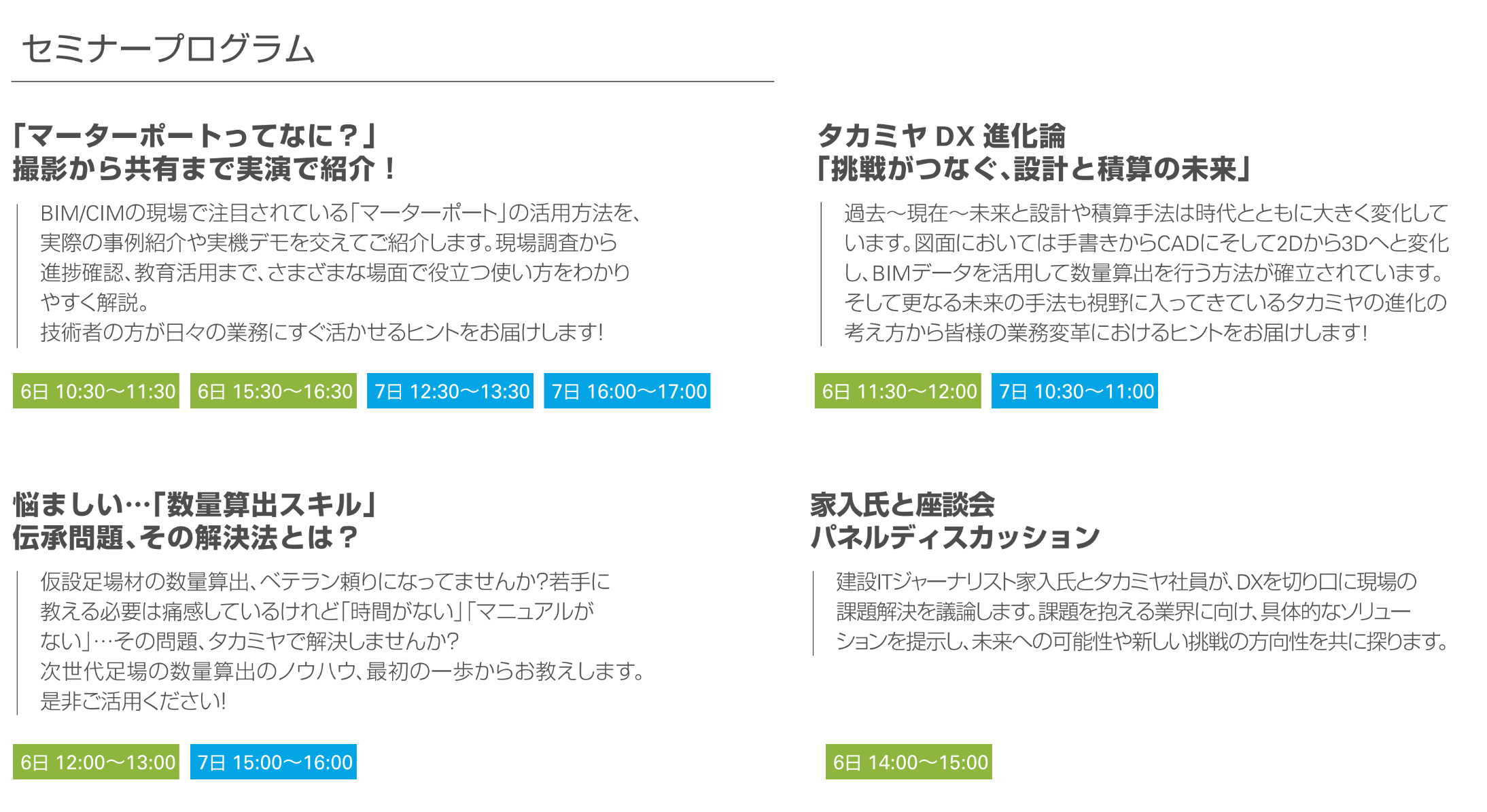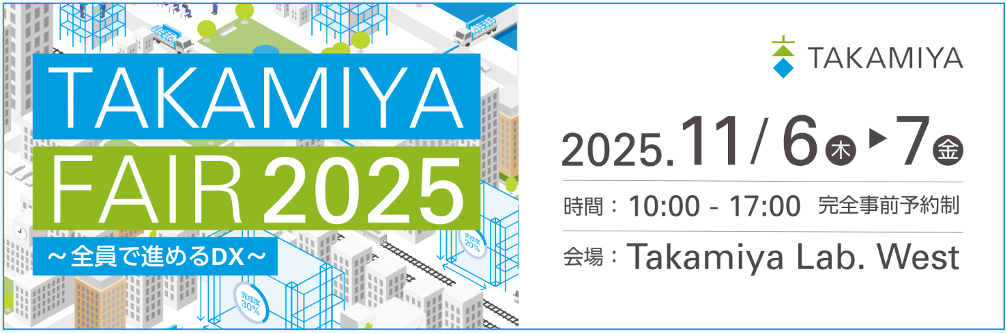 今回開催する「TAKAMIYA FAIR2025~全員で進めるDX~」もその一環として、建設業界の業務効率化と生産性向上などに貢献します。