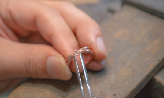 ennのジュエリーは、27年の歴を持つ熟練の職人によって一点一点受注生産で丁寧に仕立てられています。素材には、すべて天然ダイヤやプラチナ、18金など生涯身につけるにふさわしい貴金属を使用。