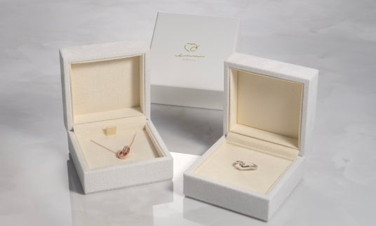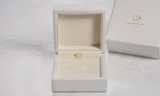 ジュエリーは全て、enn memorialオリジナルケースに入れてお届けします。私たちは「遺骨ジュエリー」を大切な存在そのものであると感じています。そのためジュエリーを納めるケースも、その想いに寄り添う特別なものをお作りしました。手にとっていただく時の質感は、重厚感がありながらもやわらかく、かけがえのない存在を感じていただけるように。また、白は「再生の象徴」とされ、最期の時を始まりと捉える仏教観にも合致いたします。