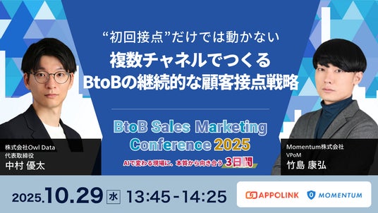 Momentum株式会社(本社:東京都港区、代表取締役社長:細井康平)は、2025年10月28日(火)から3日間開催されるカンファレンス「BtoB Sales Marketing Conference 2025