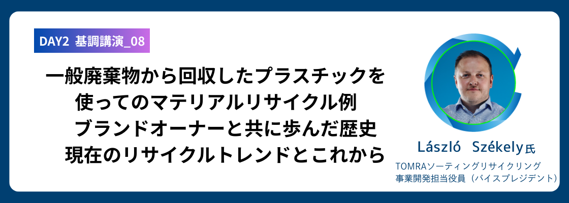 ドイツ・ドレスデン工科大学で廃棄物管理を学び、2012年にTOMRA Sorting Recyclingに入社したLaszlo Szekely氏は、リサイクル分野の新市場開拓や選別技術の開発を統括する事業開発の責任者です。ハンガリー初の自動都市ごみ選別プラント建設など豊富な実績を持つSzekely氏が、ブランドオーナーと連携したマテリアルリサイクルの歴史や、最新のリサイクルトレンドと今後の展望を紹介します。