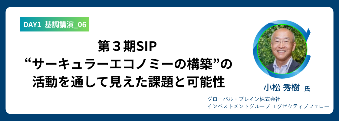 産業界と研究者をつなぐ投資・連携を推進する小松秀樹氏は、第3期SIP「サーキュラーエコノミーの構築」における活動を通じて得た知見から、企業視点での循環社会の必要性や見えてきた課題と可能性を紹介します。