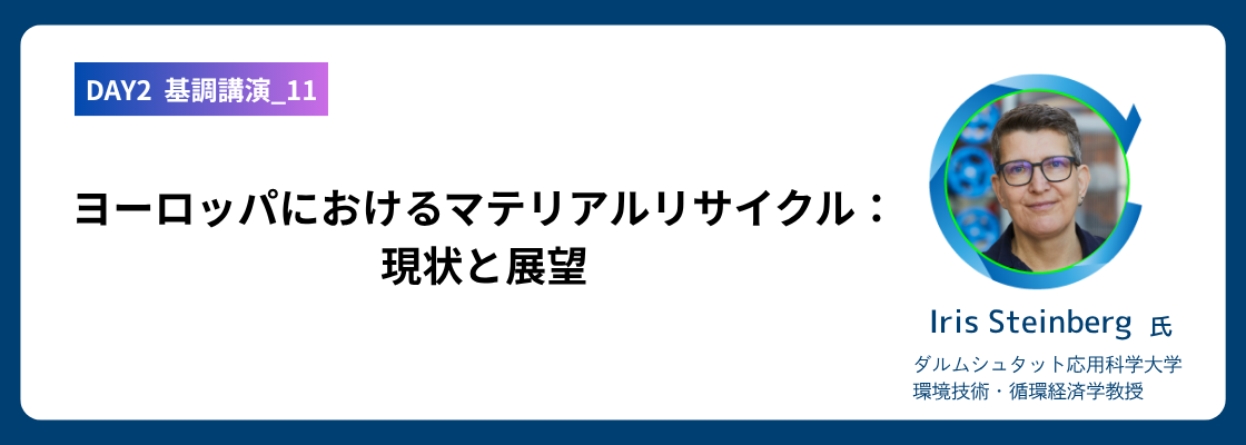 環境技術とサーキュラーエコノミーの研究教育に取り組むIris Steinberg氏は、リサイクル業界やプラントエンジニアリング企業で10年以上の実務経験を持ち、ドイツ廃棄物学会の科学諮問委員なども務めています。欧州のマテリアルリサイクルの現状と政策・制度の枠組み、さらにバイオ系残渣を活用した循環型技術の最前線を学術と実務の両面から解説します。