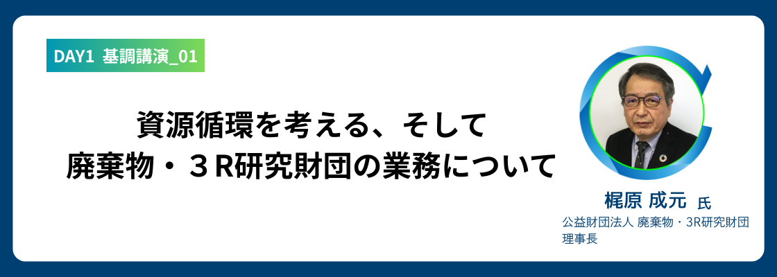 現場・経営・法規制 それぞれの“視点”から次の打ち手を見つける実践型フォーラム。公益財団法人廃棄物・3R研究財団 理事⾧ 梶原成元氏をはじめ、世界12名のリーダーによる基調講演の一部を先行公開