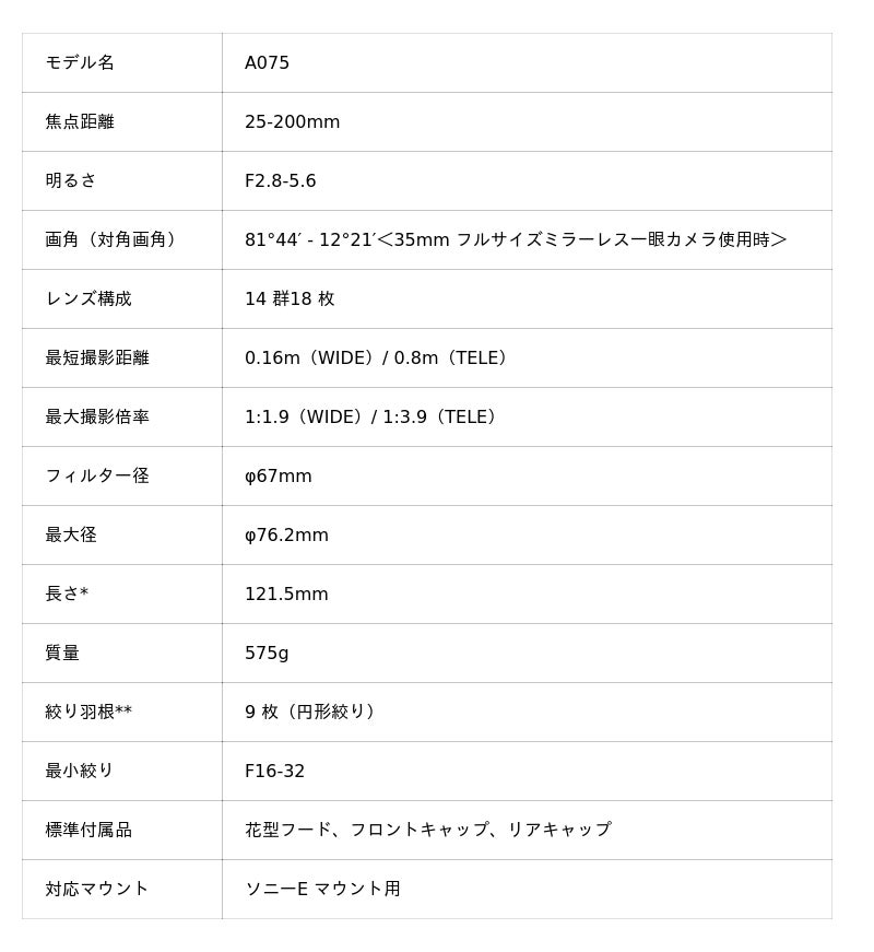 総合光学機器メーカーの株式会社タムロン(代表取締役社長:桜庭省吾、本社:さいたま市)は、フルサイズミラーレス一眼カメラ対応のソニー E マウント用高倍率ズームレンズ、「25-200mm F/2.8-5.6 Di III VXD G2(Model A075)」(以下25-200mm F2.8-5.6 G2)を2025 年11 月20 日に発売します。