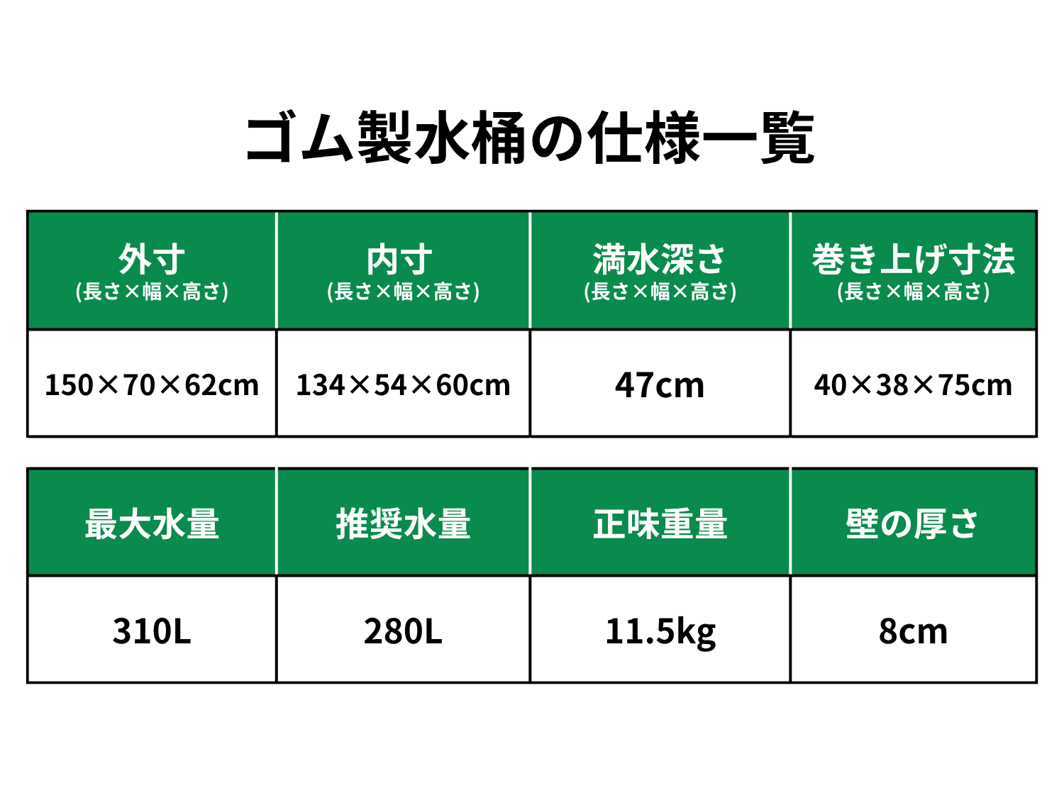 耐久性の高いゴム素材を使用した空気注入式の水桶