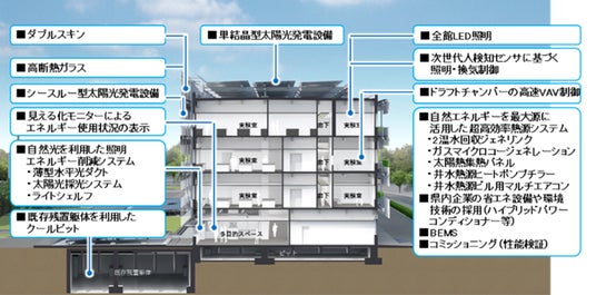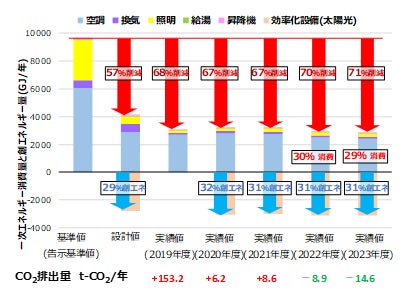 本施設は、愛知県が『環境首都あいち』にふさわしい最先端の省エネルギー・創エネルギー技術を導入した「公共施設で全国トップクラスのZEB(Nearly ZEB)の達成」を目標と定めた建物です。ZEBの達成を確実にするために愛知県はコミッショニング(性能検証)を導入しました。性能検証は久米設計を中心に大成建設や名古屋大学の協力体制の基に遂行され、設計時から施工時および運用段階に至る種々の検証と改善を経て、建物の運用開始4年後にnet ZEBの実現と大幅なCO2排出抑制を達成しました。