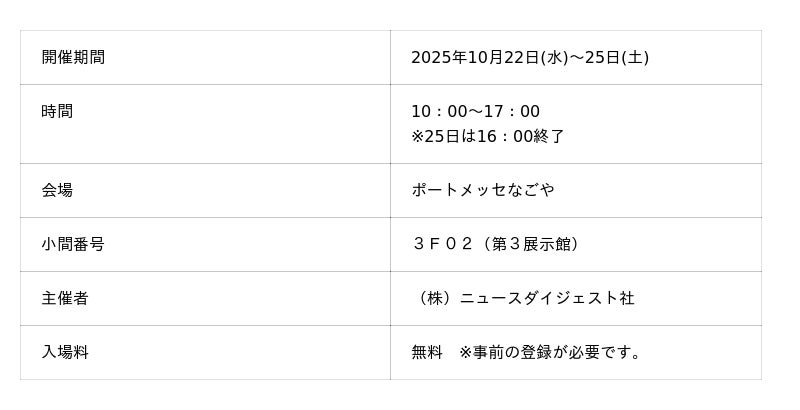 ご来場の際には、事前に主催者ホームページより来場事前登録(登録無料)をお願いいたします。