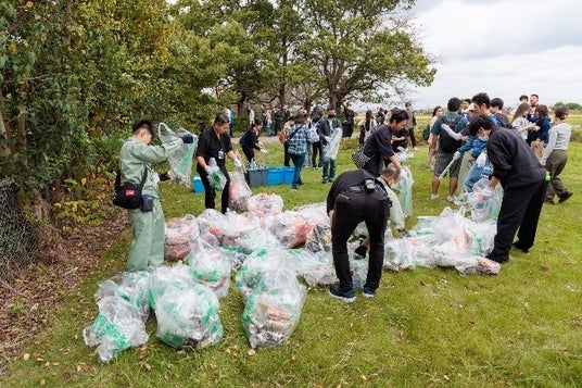 清掃活動には、一般参加者とともに賀来さん、当社社長の山田も参加し、地域の自然に触れながら、子どもから大人まで一体となり、3330リットルのごみを回収しました。