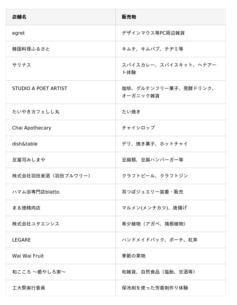 ※出店店舗及び商品は現時点での予定のため、都合により変更となる場合がございます。
