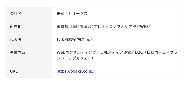 - 株式会社オークス 広報担当- E-mail:info@ooaks.co.jp