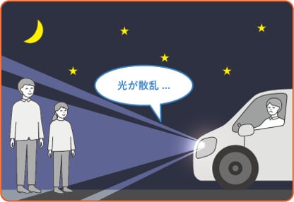 ヘッドランプ内部はエンジンやLED光源の熱で温度が上がり、ランプの外側は放射冷却により温度が下がり、ランプ内外の温度差によりランプ内側に結露が発生します。