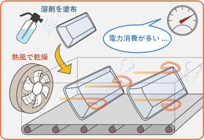 製造プロセスにおける現状の表面処理工程(塗料と熱乾燥工程)と、新しいコーティング技術の違い・改善点