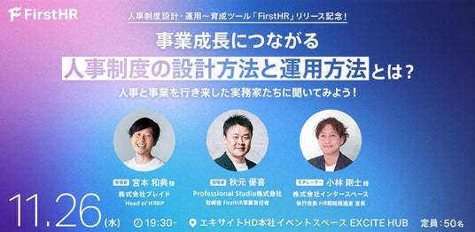 11/26(水)開催決定!人事と事業を行き来してきた二人が語る「“事業成長につながる”人事制度の設計方法と運用方法」とは?