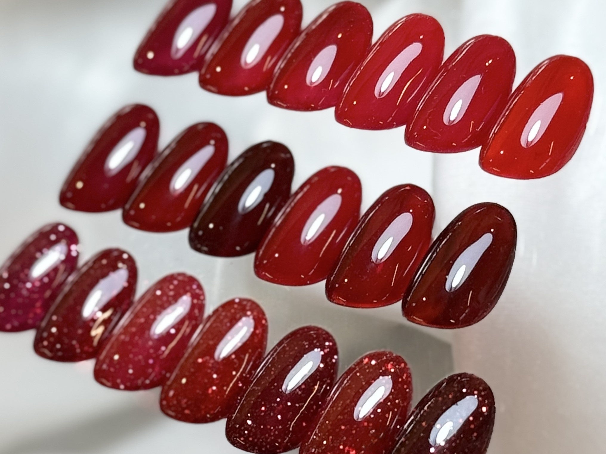 【商品説明】圧倒的な存在感を放つ、鮮やかな赤のシリーズ。1度塗りでシアー、2度塗りでセミマットな発色を楽しめる、高発色カラージェルです。すべて「赤」の12色ですが、一見似ているようで、それぞれが異なる表情を持ち、指先の印象を大きく変えます。ワンカラーがバシッと決まり、サロンワークでの仕上がりを格上げします。