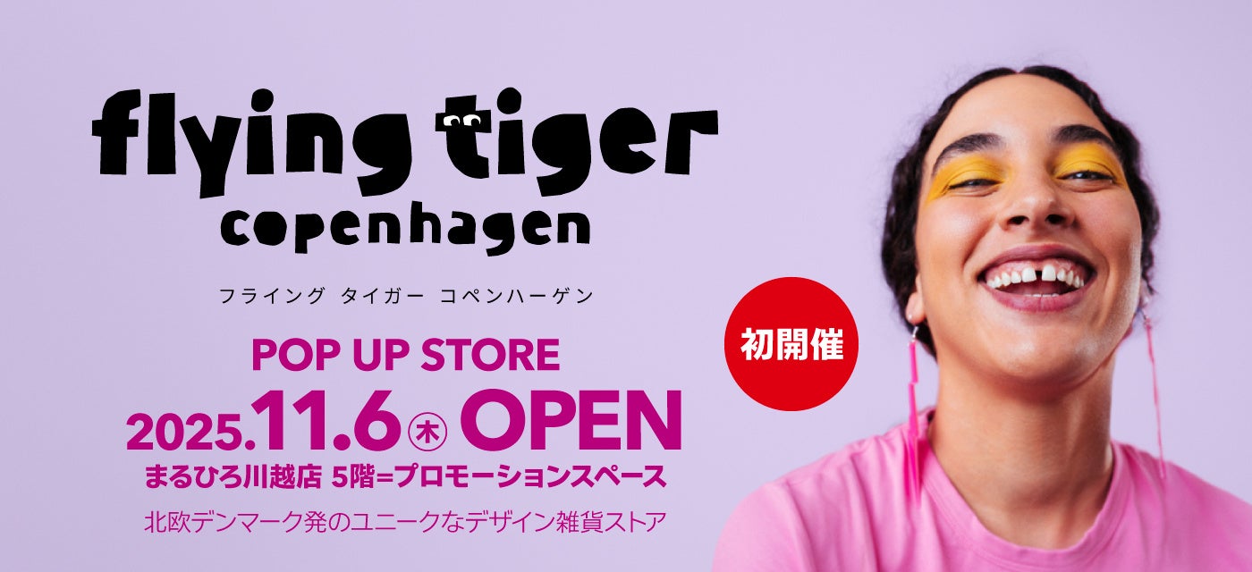 北欧デンマーク・コペンハーゲンで誕生し、ヨーロッパを中心に世界中に店舗を展開するユニークなデザイン雑貨ストア Flying Tiger Copenhagen(運営:Zebra Japan株式会社/本社:東京都渋谷区神宮前/代表取締役:松山恭子)(略称「フライングタイガー」)は、埼玉県川越市の百貨店「まるひろ川越店」の5階=プロモーションスペースにて、期間限定のPOP UP STOREを開催します。