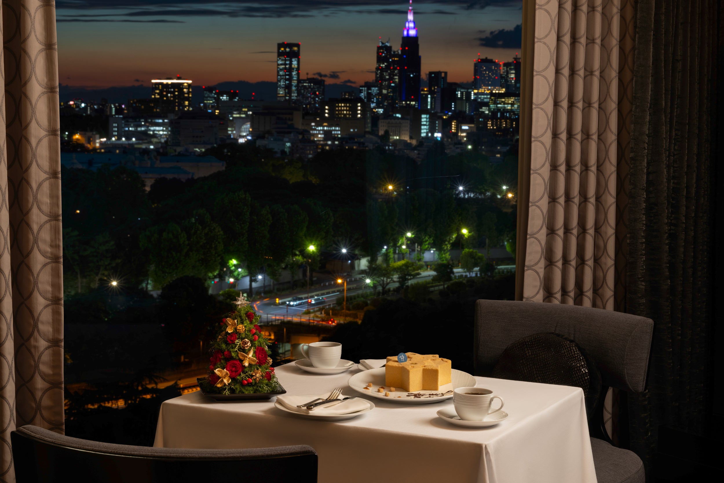 ホテルニューオータニ(東京)では、「Twinkling Christmas」と題して館内でクリスマスをお愉しみいただけるコンテンツを多数ご用意します。10月下旬からは、都内ホテル最大級となるウィンターイルミネーションが点灯。ホテル外周を総延長約10kmにわたり約13万球の光が包み込み、冬の夜空を幻想的に彩ります。さらに、正面玄関や日本庭園、館内レストランには、大小あわせて30本以上のクリスマスツリーが登場。ホテルならではの美食とともに、煌めく光に包まれる特別なクリスマスのひとときをお届けします。