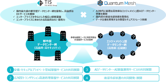 - TIS・Quantum Meshのデータセンターをハイブリッド活用した新サービスの共同開発・提供