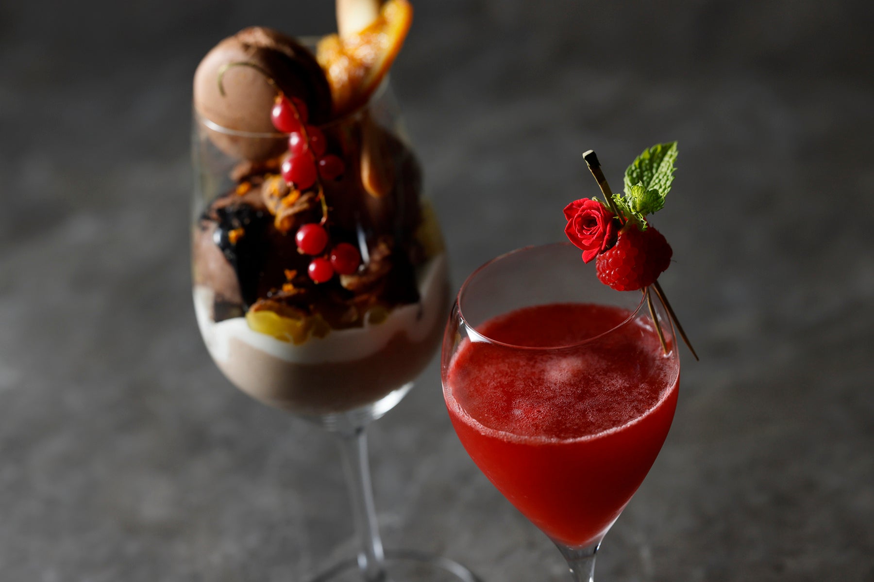 当ホテルでは、東京の夜景を一望できる「The Bar & Lounge」にて、食事やお酒の後に楽しめる“大人のデザート”を提供しています。実際にバーで提供しているお酒を使用しているほか、カクテルグラスやワイングラスなどに盛り付けた、バーならではの締めのデザートです。