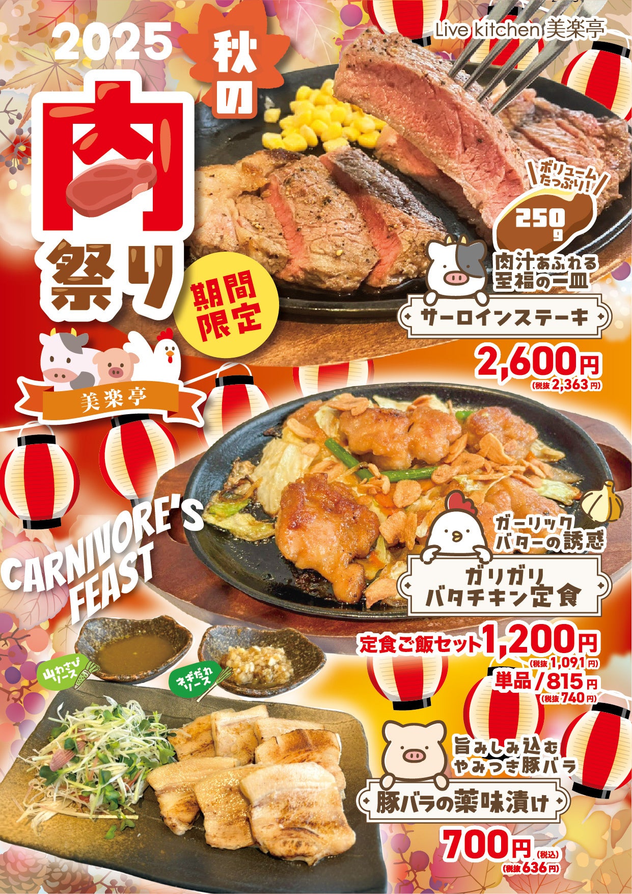 【その他館内11月イベント・キャンペーン】・美楽亭 肉祭り(2階 レストラン 美楽亭)
