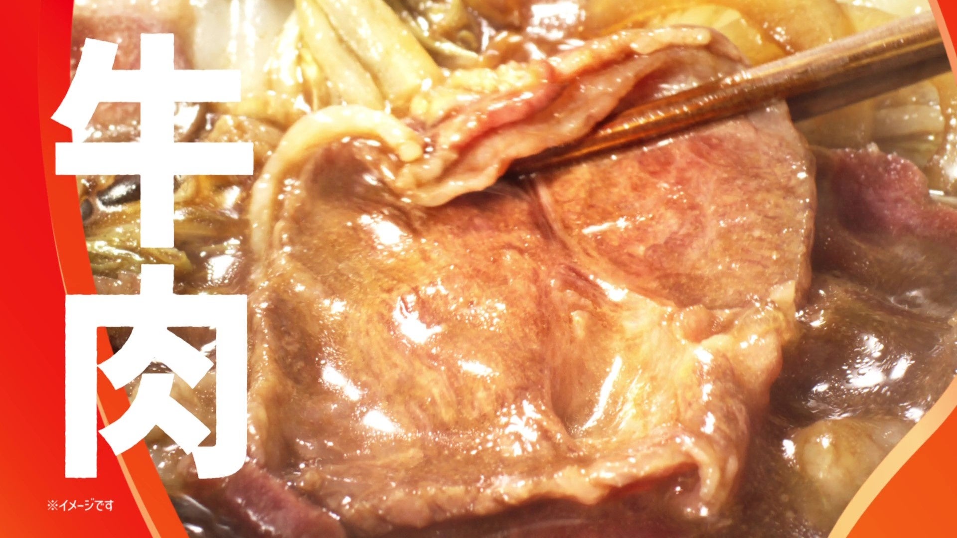 『牛すき焼き弁当』の美味しさを躍動感のあるシズルとアニメーションを組み合わせることで、明るく、元気に表現しました。