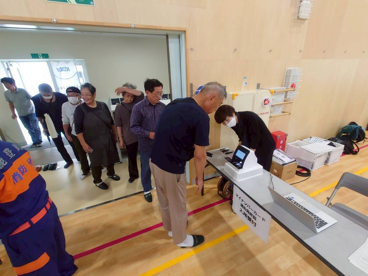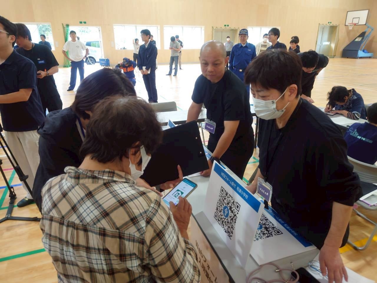 実施内容:午前9時30分、七尾湾東方断層帯を震源とするM7.6・最大震度7の地震が発生、気象庁が津波警報を発表したことを想定し、バカンが提供する「避難者マネジメントシステム」を使用。避難所入所受付の従来の紙の避難者カードへの記入を、カードリーダー、WEBフォームへの入力等によってデジタル化し、デジタル技術を活用した避難所受付のメリットについて体験し、理解を深めるとともに、避難者マネジメントシステムへの住民・職員からのフィードバックを得ることを目的に実施。