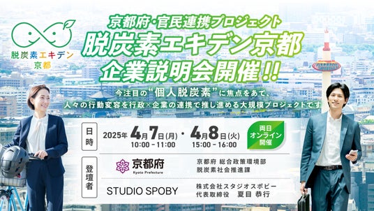 株式会社スタジオスポビー(東京都中央区、代表取締役:夏目恭行)と京都府は、府内事業者の従業員や府民の脱炭素に関わる行動変容の促進を目的とする事業連携協定を2025年3月17日(月)に締結しました。