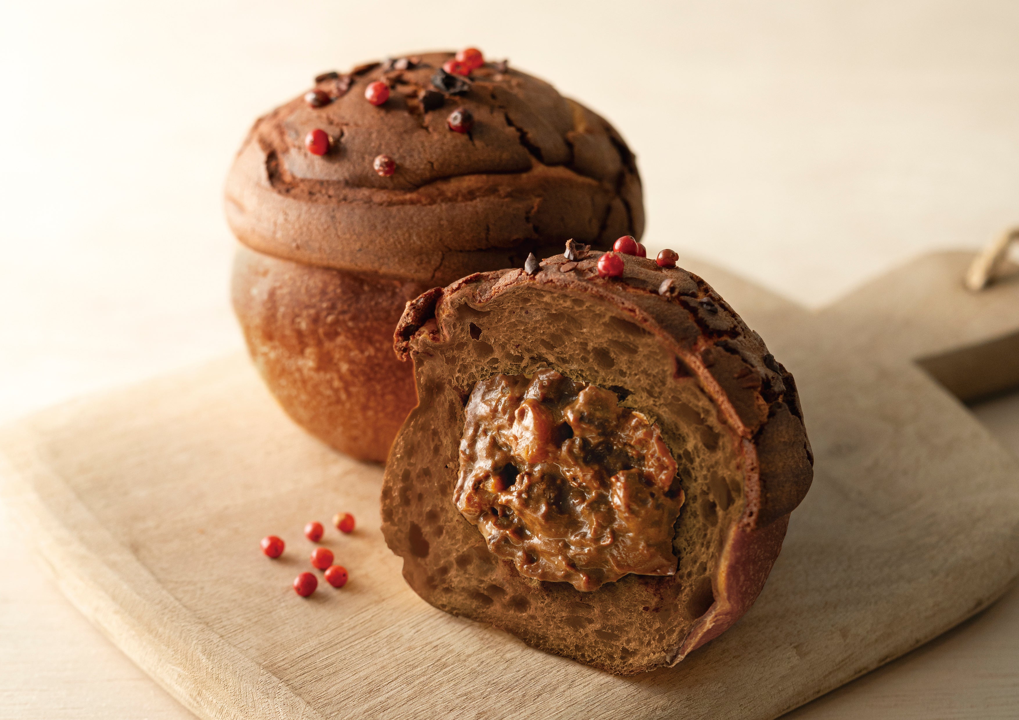 ゴディパンのユニークなお総菜パンに「ビーフシチューパン」が西武池袋本店限定で加わります。ピンクペッパーとカカオニブでおめかししたココア生地の帽子をかぶり、隠し味にチョコレートを合わせた特製ビーフシチューをふわふわなパンで包みました。シチューのコクと深みをグッと引き立ててまろやかな味わいに。