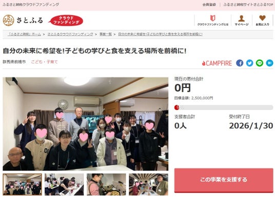 群馬県前橋市とさとふる、未来を担う子どもたちの学びや育ち、食環境を整えるため、4事業の寄付受け付けを開始