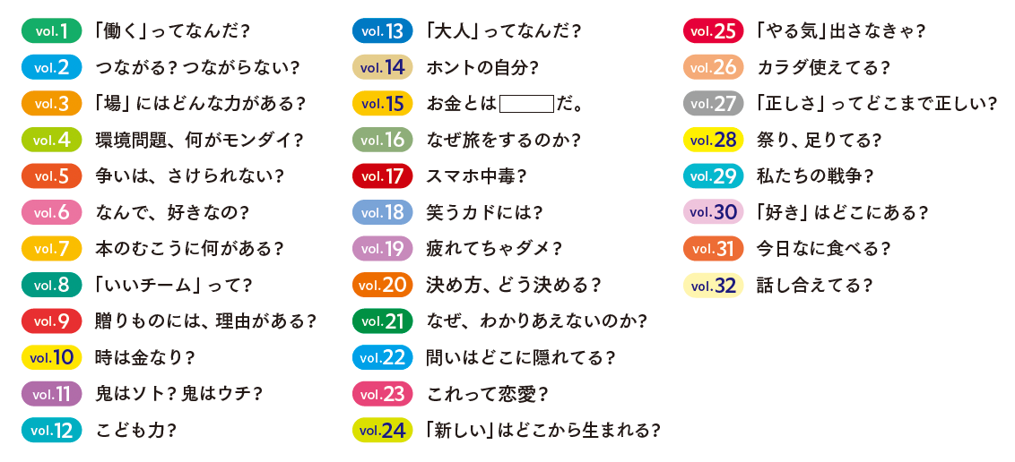 「ほんのれん」のワークショップツール「ほんのれん旬感ノート」。30種類以上あるテーマの中から、対話したい「問い」をお選びいただけます。