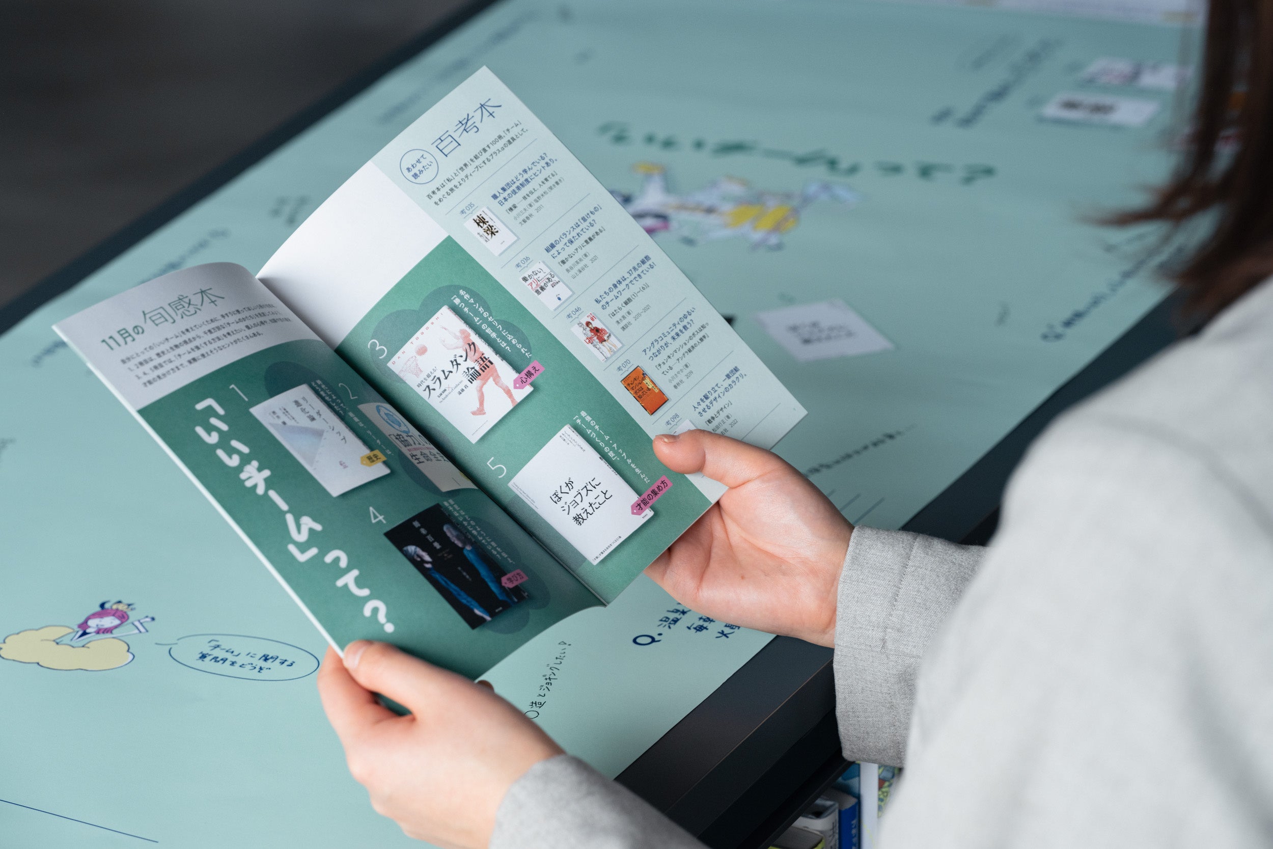 「ほんのれん旬感ノート」では、「問い」を考えるために厳選した5冊の本を紹介。冊子を読むだけで、5冊分の本からの視点に触れて思考を深めることができます。